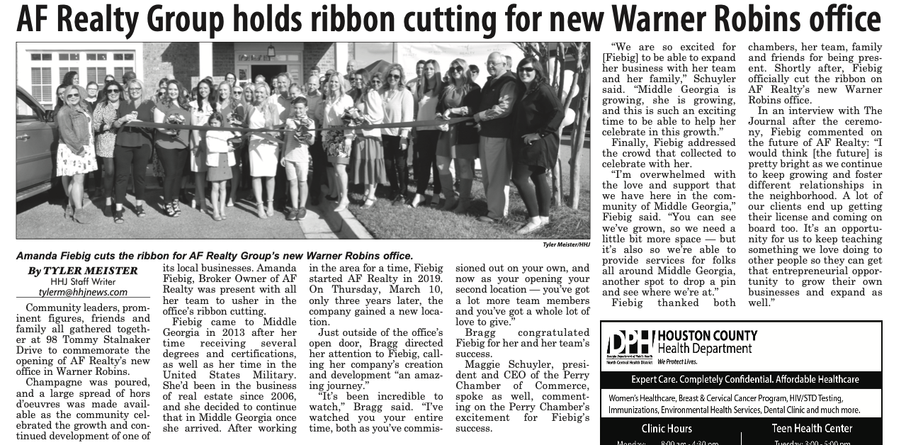 We are so proud to announce that AF Realty Group has opened a second branch office in Warner Robins! We are honored to be able to expand so we can serve our Middle Georgia clients better.